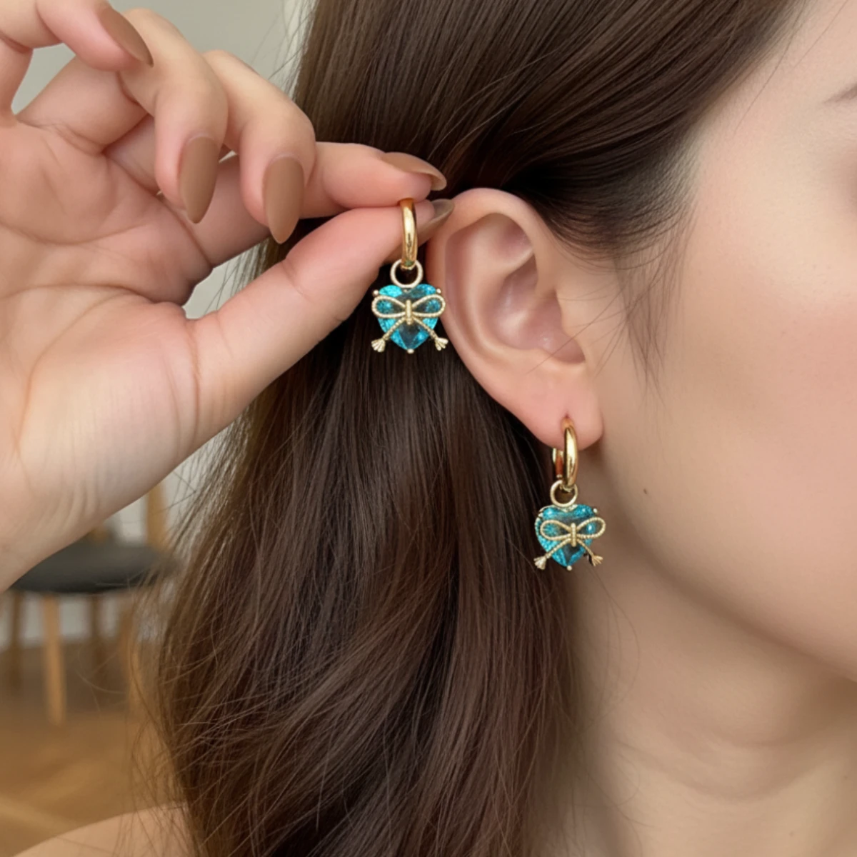 Bow & Heart Zircon Cuff Earrings– 18K Gold Plated