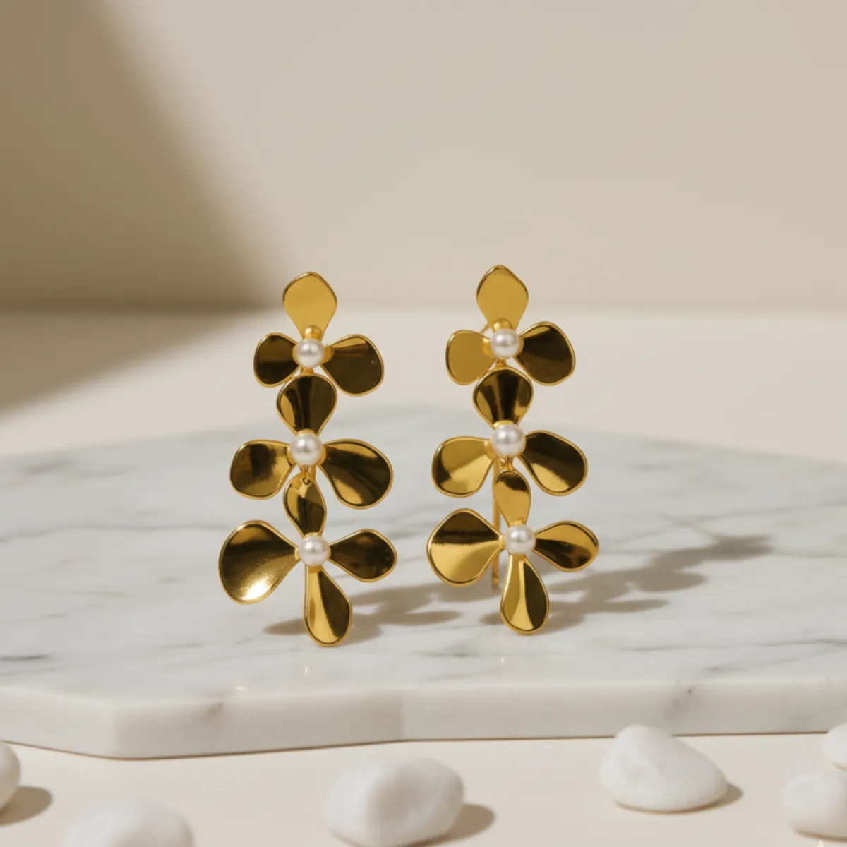 Flora Pearl Statement Earrings – 18K Gold Plated